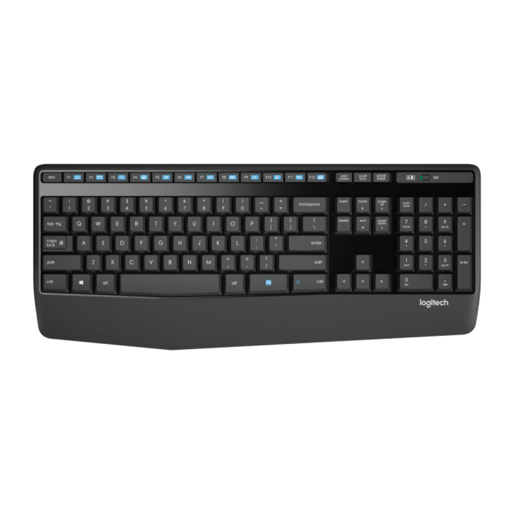 استمتع بالكتابة المريحة والهادئة على لوحة مفاتيح مألوفة كاملة الحجم مع مسند راحة يد واسع وارتفاع قابل للتعديل. بالإضافة إلى مفاتيح وسائط يسهل الوصول إليها ولوحة أرقام للعمل بكفاءة في المنزل أو في المكتب.